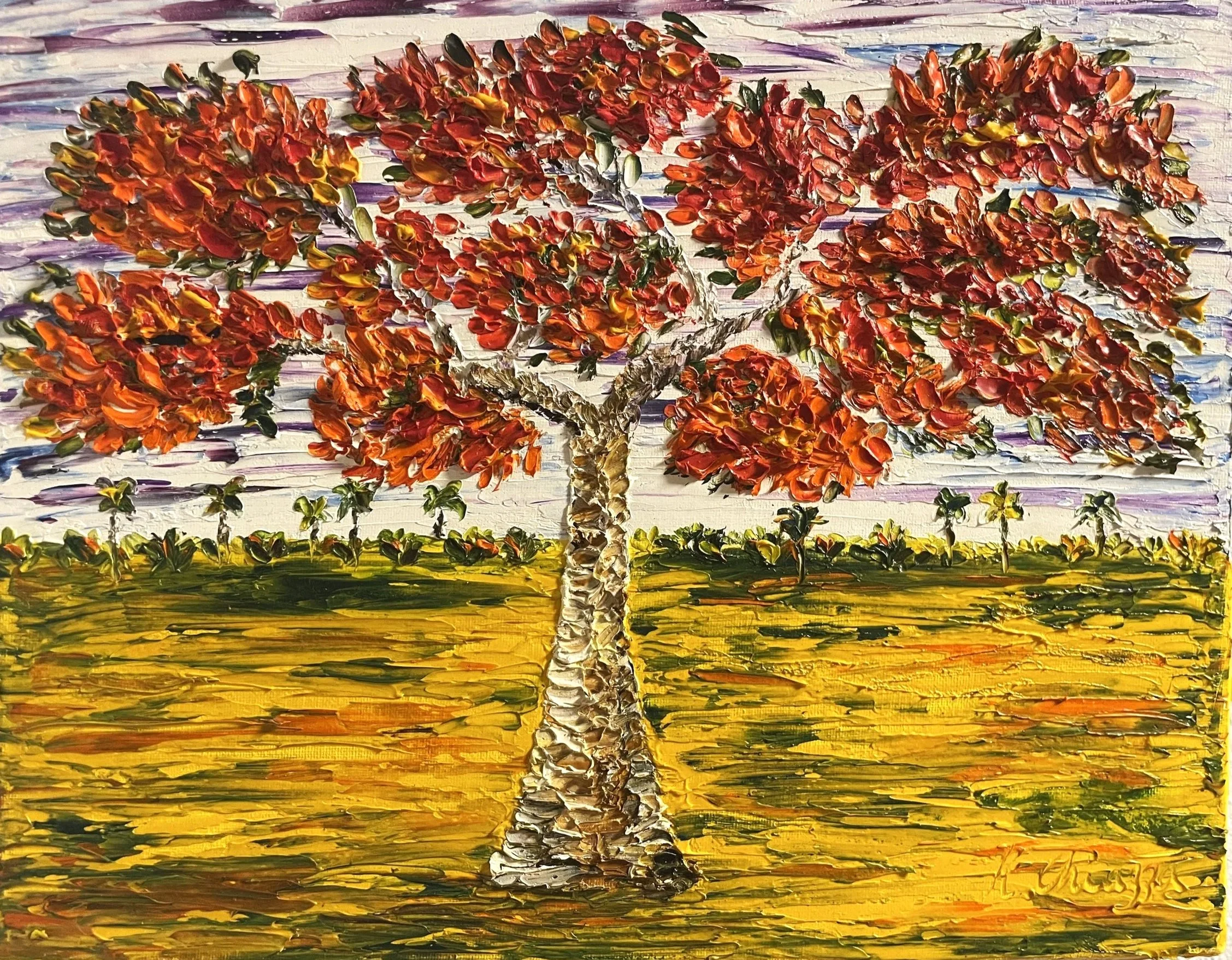 Chiazza’s work is recognised for its rich texture and expressive use of colour, drawing inspiration from the natural beauty of the Cayman Islands to create vibrant, atmospheric compositions.